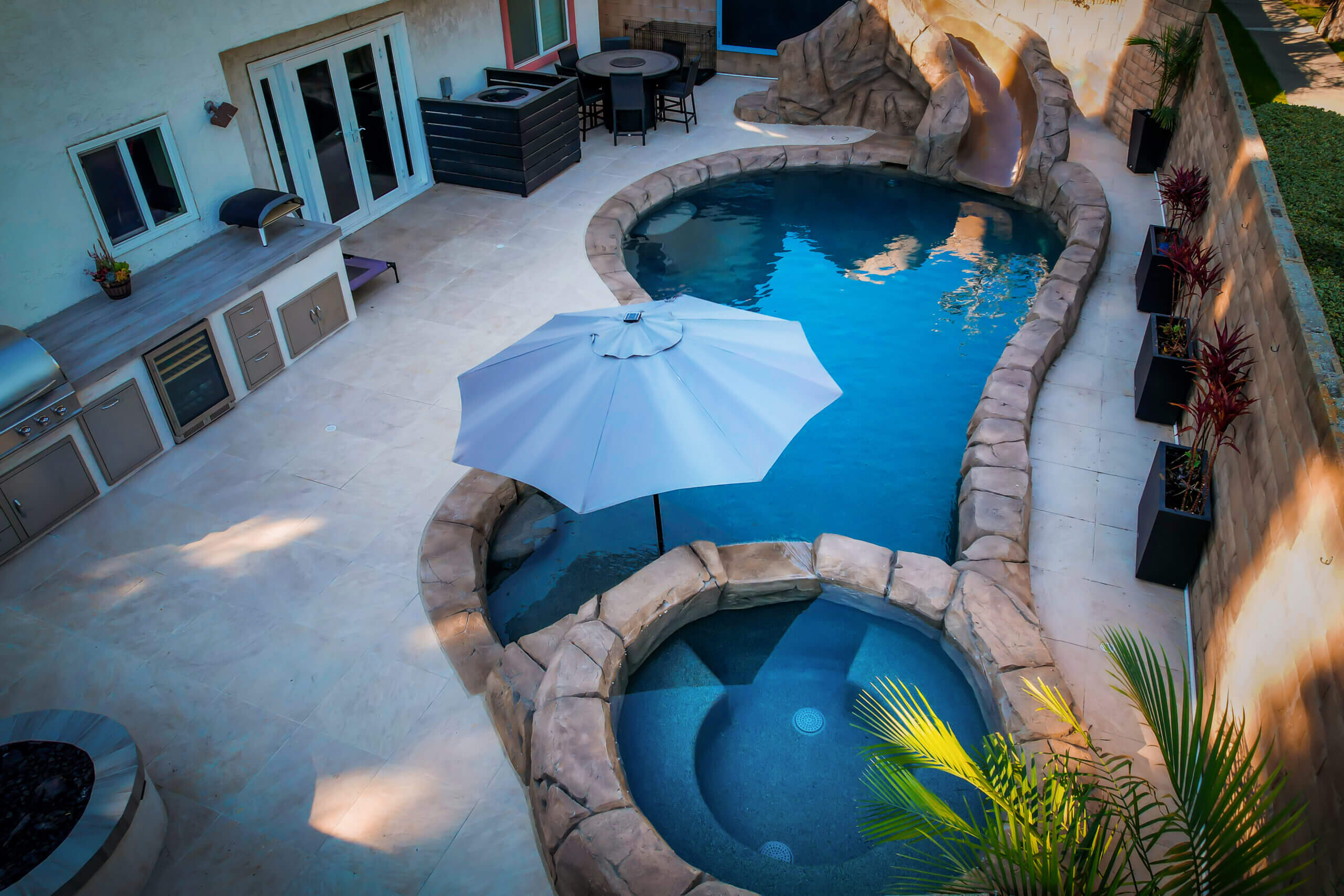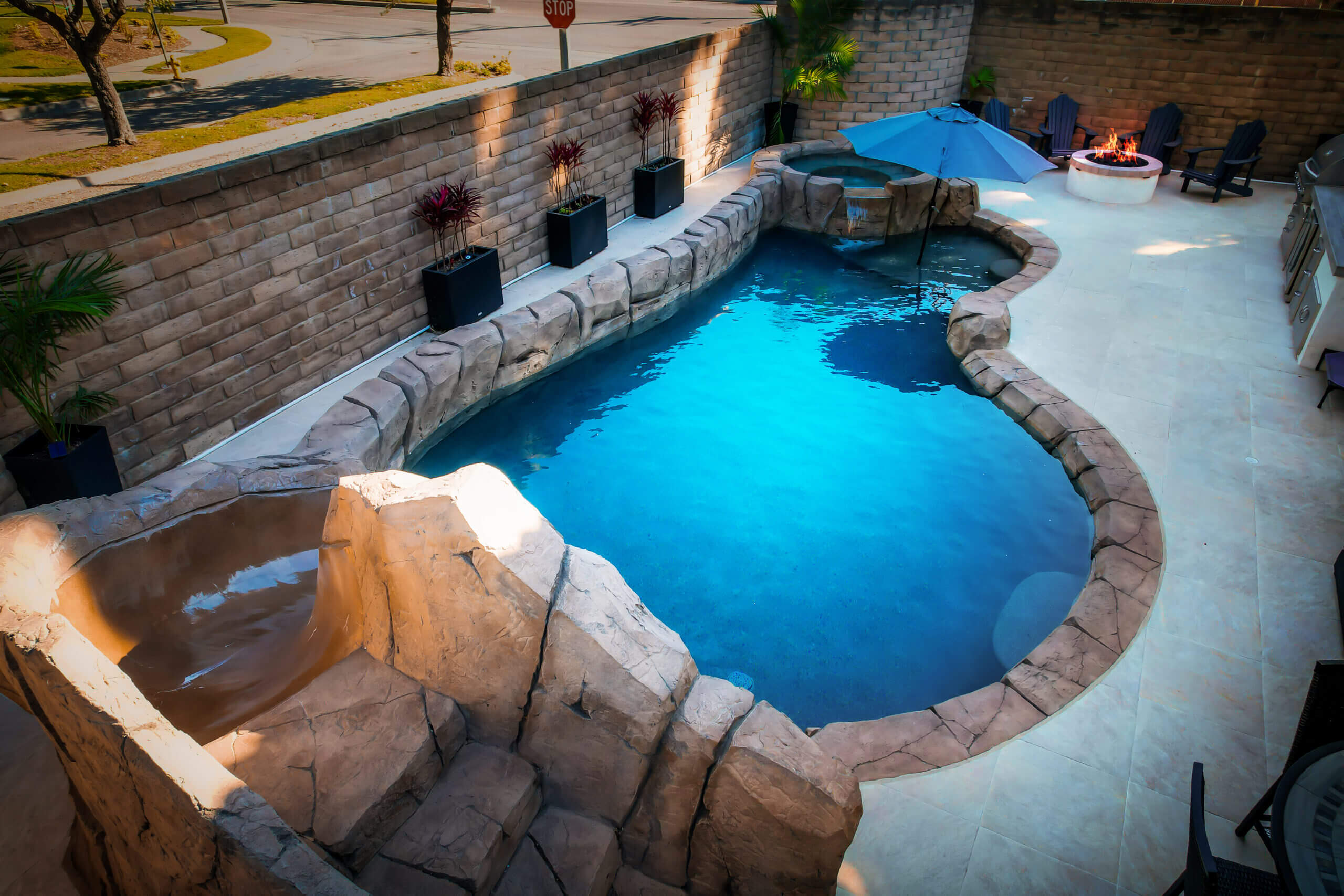 Dive into the allure of the Mediterranean with our exquisite pool concept, where timeless elegance, vibrant colors, and natural elements converge. Immerse yourself in crystal-clear waters, relax on sun-soaked terraces, and explore the adventurous side with thrilling slides and rock features. Experience the ultimate backyard oasis that captures the essence of Mediterranean luxury and indulgence.