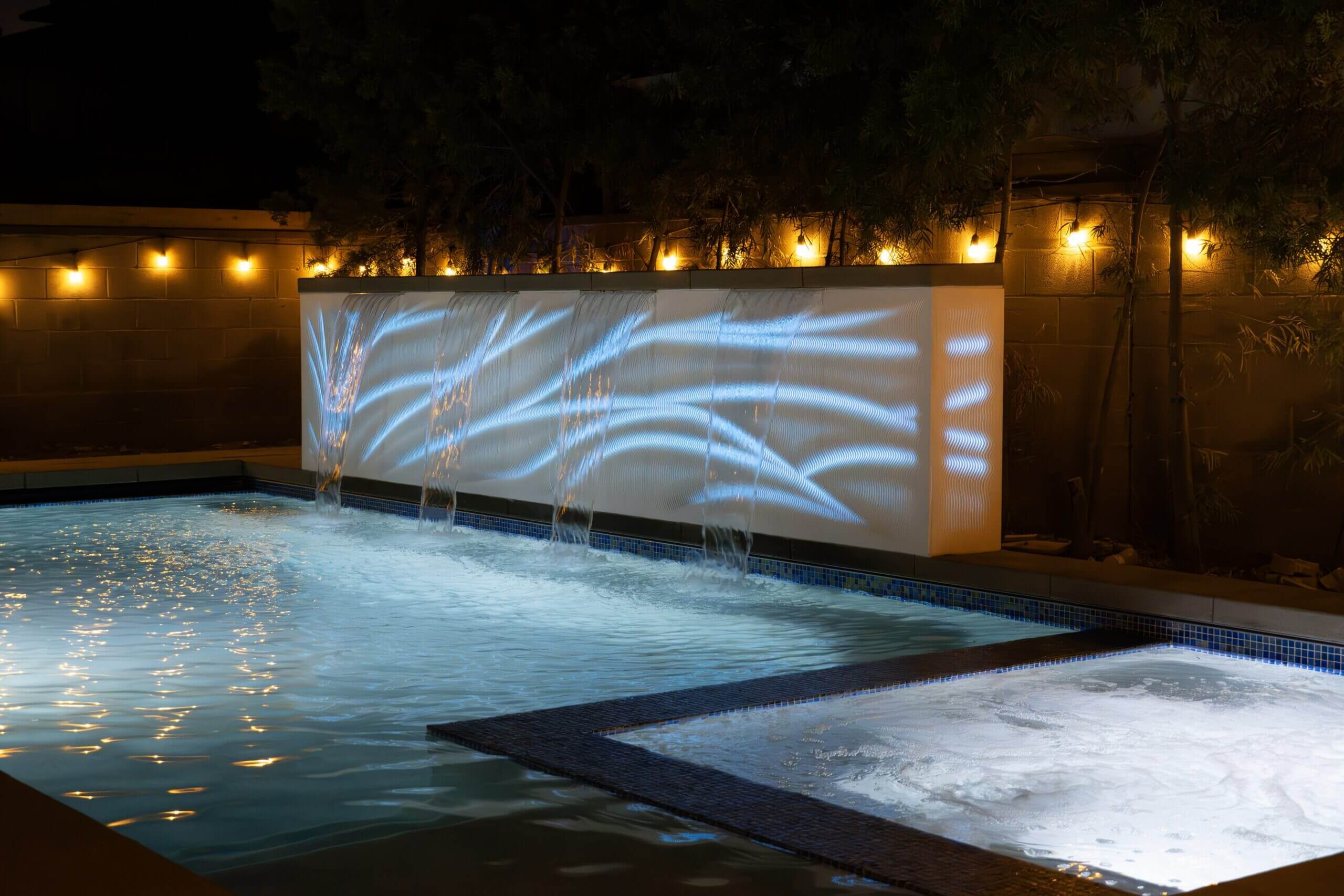 Transforming backyard dreams into reality with our latest pool project! This luxurious installation showcases a refined mini pebble white finish, adding an elegant touch to the entire space. Designed with convenience and aesthetics in mind, the pool is equipped with an automatic in-ground pool cover that effortlessly ensures safety while maintaining a streamlined look. The modern MR wall not only enhances the pool’s architectural appeal but also adds a sophisticated focal point to the overall design. With the addition of an eco-friendly salt system and seamless control via the advanced InteliCenter, this pool offers a premium swimming experience with ultimate ease and functionality. Dive into the epitome of style and innovation!