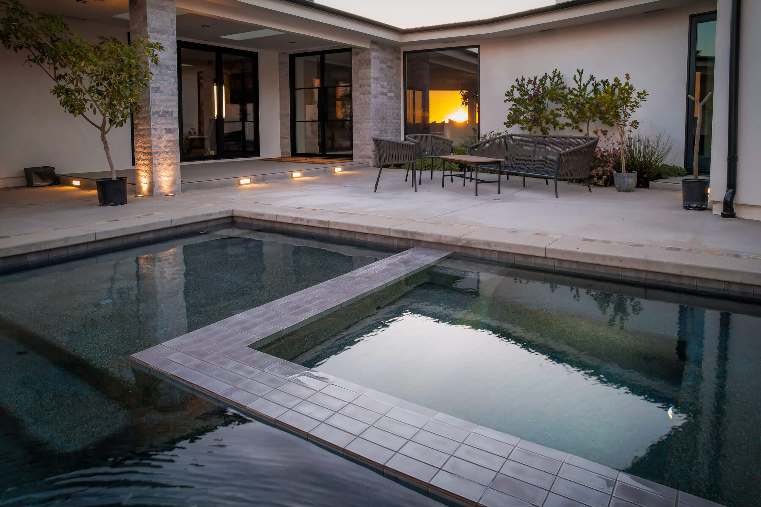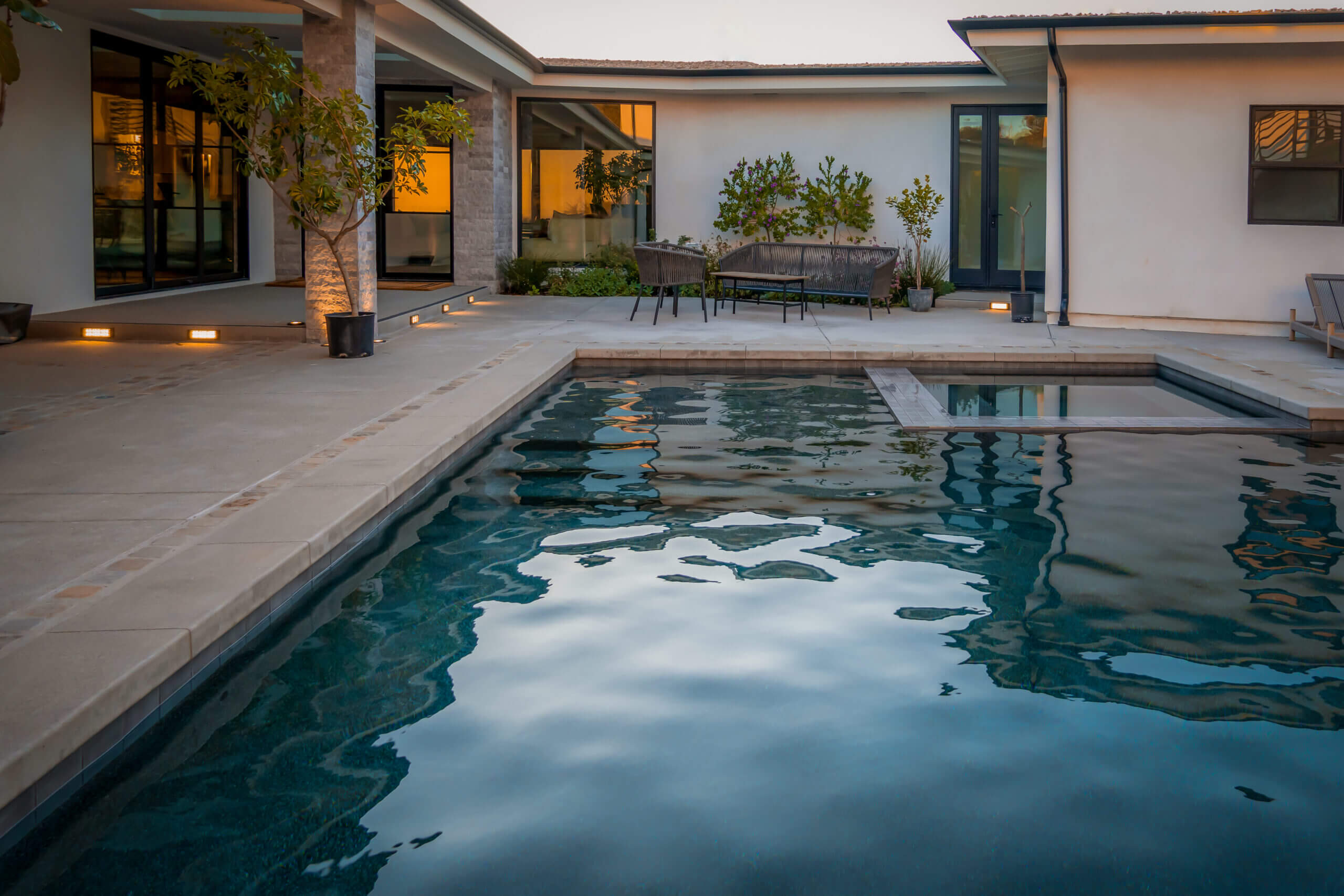 Experience pure luxury and relaxation in our incredible pool oasis. Nestled in the stunning Newport Hills, our large pool features a spacious spa and stylish Baja step. With deck jets surrounding the pool, you’ll be mesmerized by the playful water features. The dark-colored mini pebble finish adds a touch of sophistication. Dive into this ultimate pool retreat and let the Newport Hills enchant you.